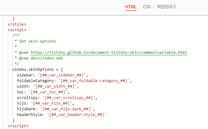 - 스킨변경 탭에 이미 코드테마 관련한 기능이 있자나.. 여기에 입력하면 뭐가 바뀌는건지를 찾아해맴