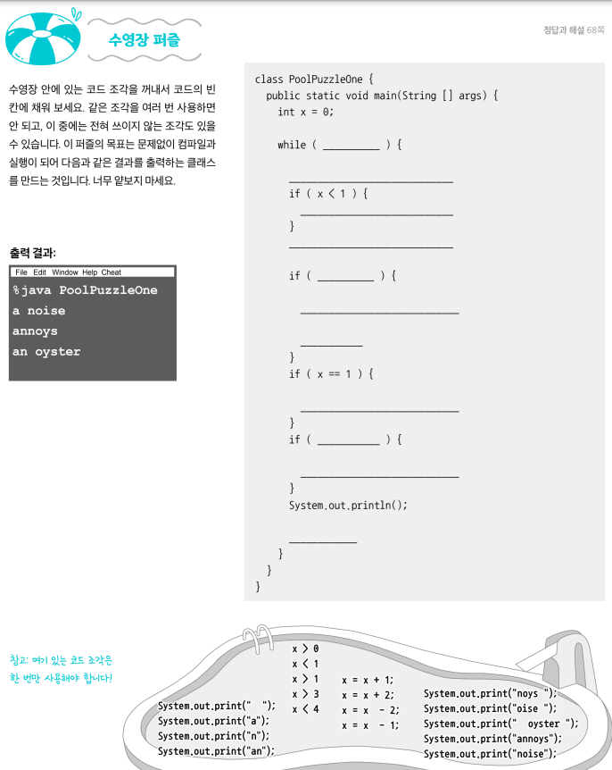System.out.print(" oyster"); //3번째 2일때만 실행되는 띄어쓰기 포함된 oyster